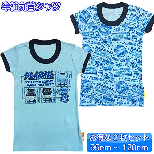 キッズ 半袖丸首シャツ プラレール 2枚組 Tシャツ 肌着 95cm 100cm 110cm 120cm inn16(120)