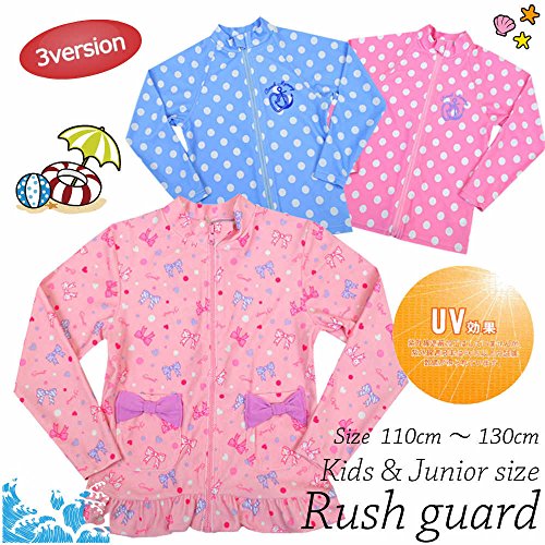 キッズ ジュニア 子供用 長袖 ラッシュガード 水着 日焼け対策 男の子 女の子 fo-rsg35 130cm 水玉(ブルー)