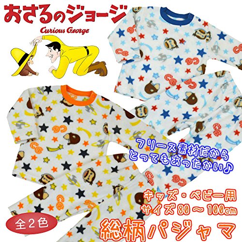 おさるのジョージ キュリアスジョージ 総柄 冬物 フリースパジャマ 子供用 fo-en2835 95cm サックス