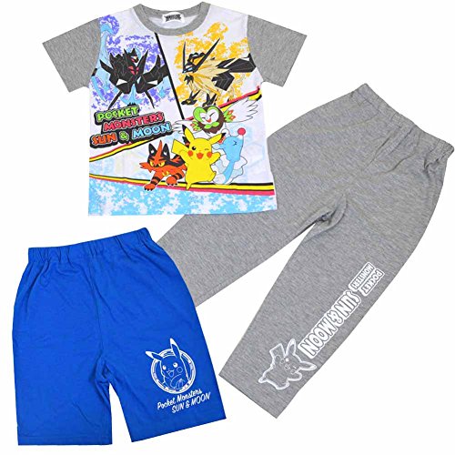 ポケモン 半袖パジャマ Tシャツ スーツ 2パンツ ポケットモンスター サン&ムーン キッズ 男の子 ボーイズ fo-29pjグレー110cm