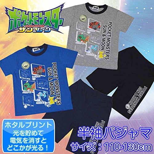 ポケモン パジャマ 子供用 半袖 光るパジャマ ポケットモンスターサン&ムーン キッズ男の子 fo-23pj04グレー130cm