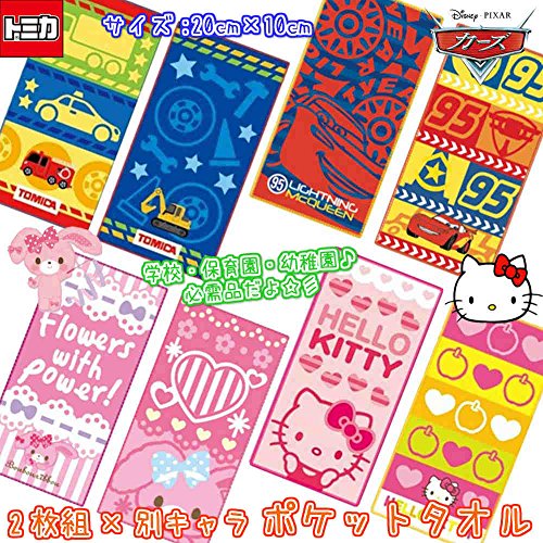 ミニタオル ポケットタオル ハンカチ 2枚組 ディズニーカーズ トミカ ハローキティ ぼんぼんりぼん fo-900t 男の子セット
