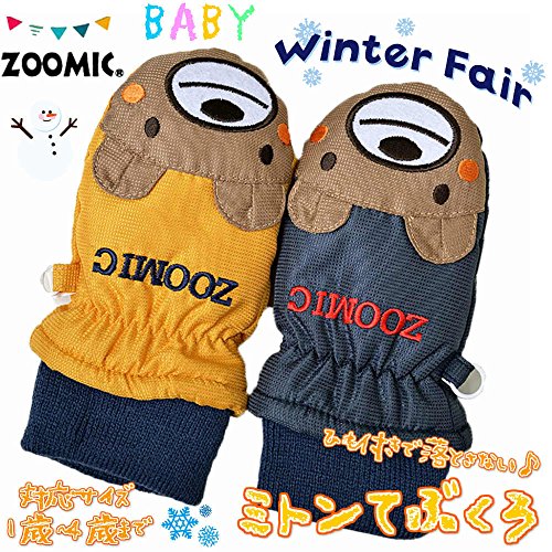 ベビーサイズ ミトン手袋 スキー スノー手袋 防寒 雪用手袋 ZOOMIC j-284001 3~4才用 ネイビー