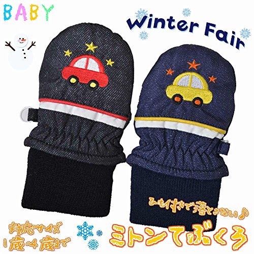 ベビーサイズ ミトン手袋 スノー手袋 防寒 雪用手袋 くるま刺繍 j-280001 1~2才用 ブラック