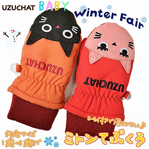 ベビーサイズ ミトン手袋 スキー スノー手袋 防寒 雪用手袋 UZUCHAT j-284004 3~4才用 オレンジ