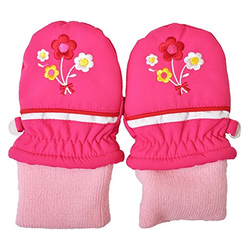 ベビーサイズ ミトン手袋 スノー手袋 防寒 雪用手袋 お花刺繍 j-280002 3~4才用 ローズ