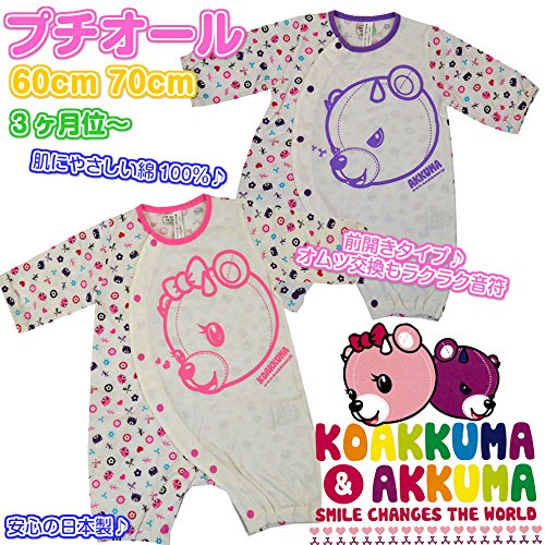 ロンパース コアックマ 長袖 モノグラム カバーオール 男の子 女の子(パープル60cm)