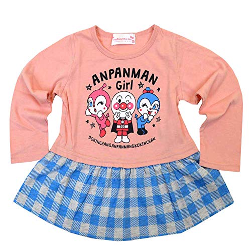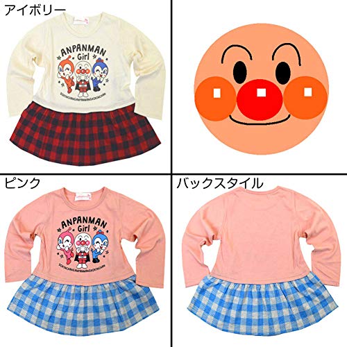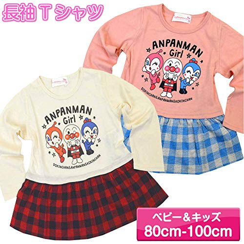 アンパンマン Tシャツ 長袖 裾チェック切り替え 80cm 90cm 95cm 100cm pz-ap06(ピンク95)