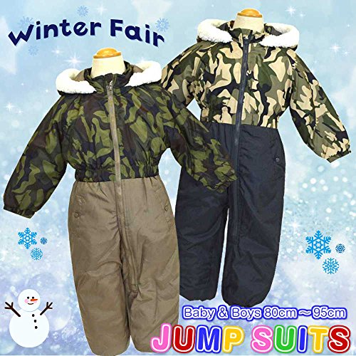 ジャンプスーツ 防寒 カバーオール ベビー スキーウェア 中綿 着ぐるみ スノーコンビ 防寒つなぎ 雪遊び スノーウェア t-b67649tm 95cm カーキ