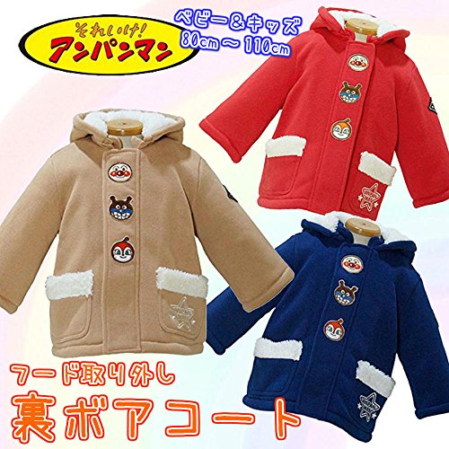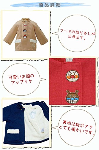 アンパンマン 裏ボアコート 防寒あったかコート フード取り外し 顔アップリケ コート Anpanman j-at01 95cm ネイビー