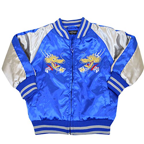 スカジャン ドラゴン 龍 刺繍 子供用 キッズ ジュニア 中綿 ジャンバー ブルゾン fo-337400 110cm 青×シルバー