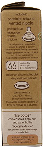Lid doubles as a measuring cup or snack cup;Nipples use a peristaltic stretch & contract design that helps to reduce the risk of colic, spit up and ear infections;Life bottle system transitions baby from bottle feeding, to Sippy cup, to a lunchbox friendly water bottle by simply using the appropriate accessory