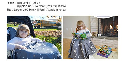 表面はコットン100%、裏面はマイクロベルボア生地となっており、コットン特有の肌触りとベルボアの温かさを感じることができます。リバーシブルに両面お使い頂けます。 チャイルドシート・ベビーカーはもちろん、オフィスやお家でひざ掛け・ケープとしても使えます。