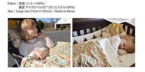 表面はコットン100%、裏面はマイクロベルボア生地となっており、コットン特有の肌触りとベルボアの温かさを感じることができます。リバーシブルに両面お使い頂けます。 チャイルドシート・ベビーカーはもちろん、オフィスやお家でひざ掛け・ケープとしても使えます。