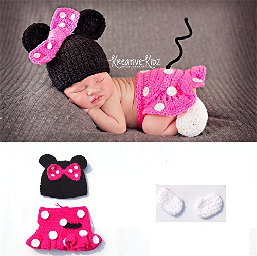 PANCY ベビー服 ベビー用 ミニー コスチューム 寝相アート 新生児 着ぐるみ 三点セット 出産祝い プレゼント ローズ