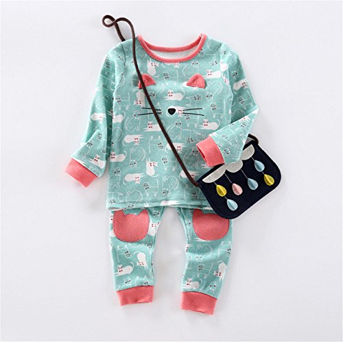 PANCY 子供服 春秋 パジャマ キッズ ベビー 長袖 ルームウェア ロングパンツ 上下セット 男の子 女の子 綿 おしゃれ カジュアル 可愛い 猫 ネコ 動物柄 シンプル