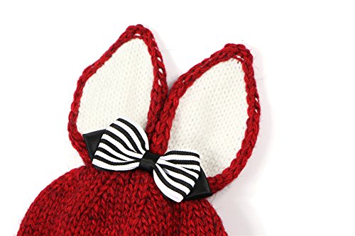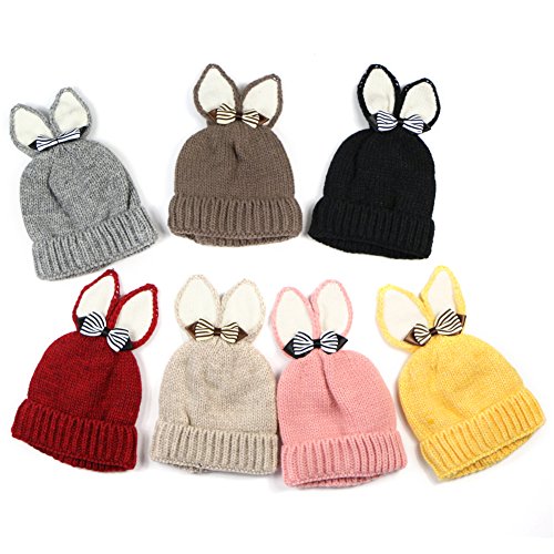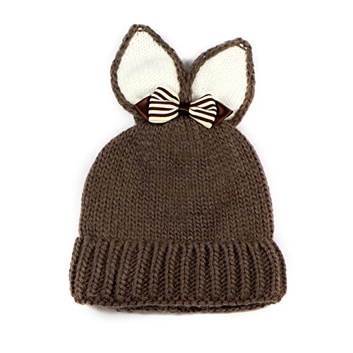 PANCY 秋冬 帽子 子供 ニット帽 女の子 キャップ 毛糸 防寒 ボア かわいい リボン うさぎ耳 50cm 1~5歳(ブラウン)
