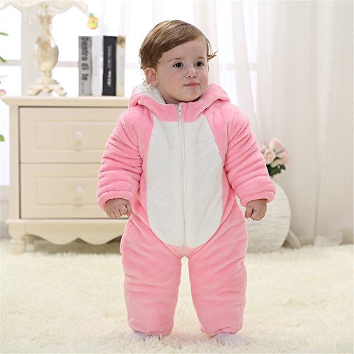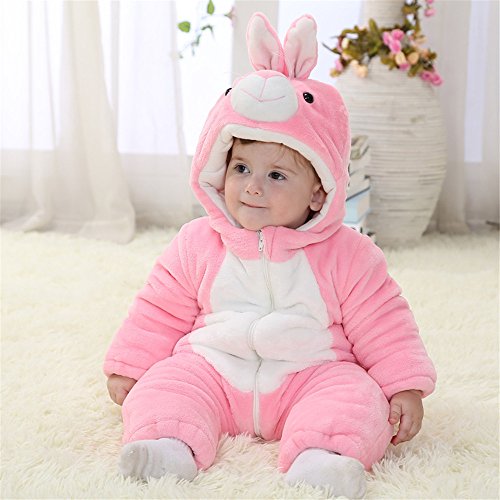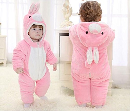ウサギ マシュマロボア&オーガニックコットン くまさんジャンプスーツ ふわふわ柔らか 抱きしめたくなるあったか カバーオール 選べる足先 手洗い可 スウィートフェアリーズ コスチューム まだらベビー服 キッズ 兎 ピンク(pink) (100, ウサギピンク)