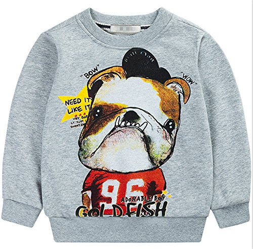 PANCY 子供服 春秋 長袖 Tシャツ トレーナー 丸い襟 男の子 女の子 ベビー おしゃれ カジュアル ファッション 可愛い 動物柄 犬 プリント 3色