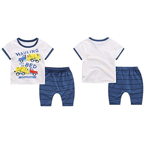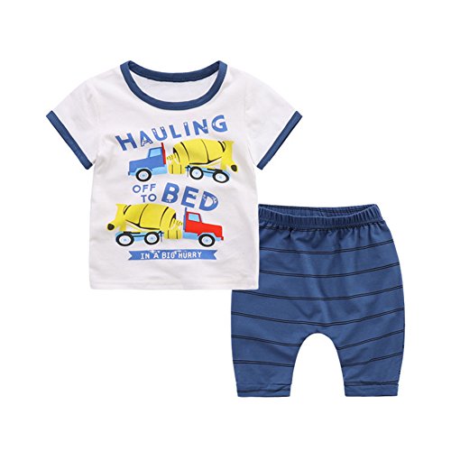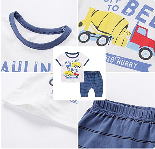 PANCY 子供服 春夏 コットン Tシャツ 短パン 上下セット 男の子 女の子 かわいい 動物プリント 白(車柄,130cm)
