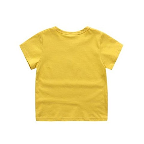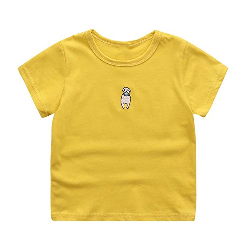 PANCY 子供服 春夏 半袖 Tシャツ 男の子 女の子 コットン 無地 かわいい 刺繍(イエロー,120cm)