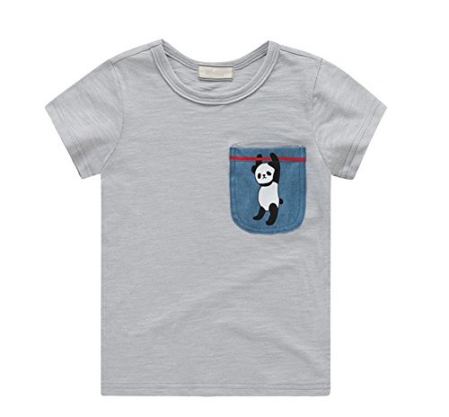 PANCY 子供服 夏 半袖 Tシャツ キッズ 男の子 女の子 丸い襟 おしゃれ カジュアル ファッション 可愛い パンダ 動物 プリント 3色(グレー/90#)
