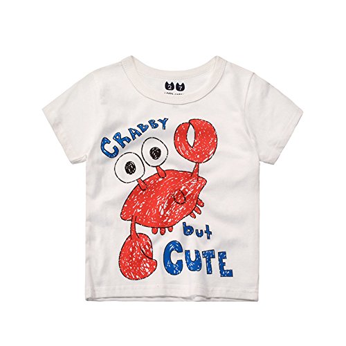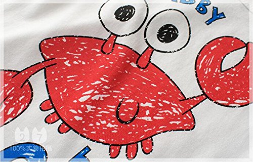 PANCY 子供服 春夏 半袖 Tシャツ 男の子 女の子 コットン製 プリントTシャツ かわいい 動物柄 白(カニ,90cm)
