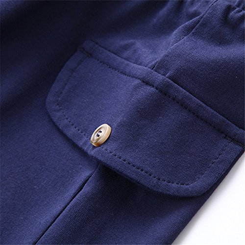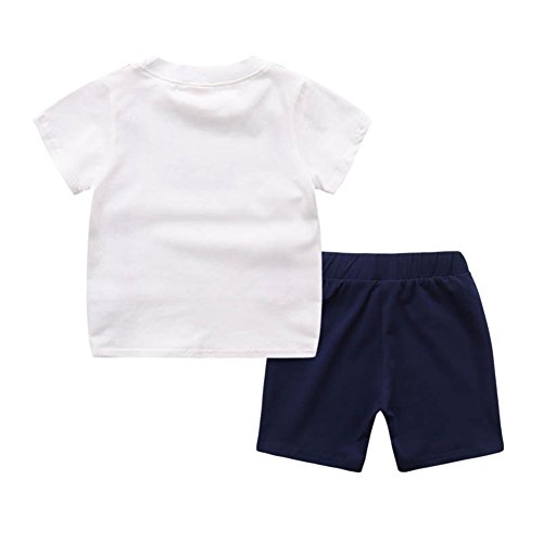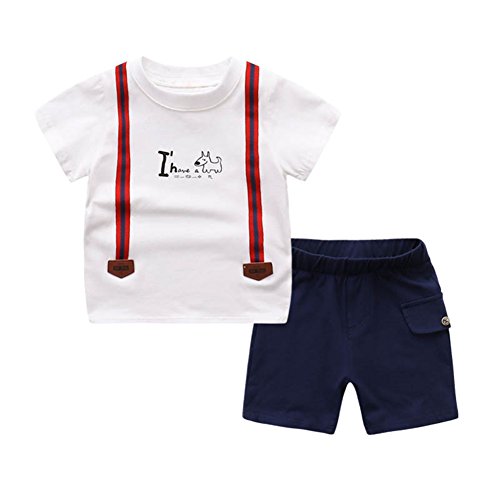 PANCY 子供服 春夏 コットン Tシャツ 短パン 上下セット 男の子 女の子 白 ネイビー サロペットプリント おしゃれ(120cm)