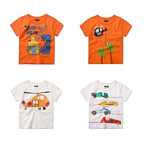 PANCY 子供服 春夏 半袖 Tシャツ 男の子 女の子 コットン プリントTシャツ かわいい(ホワイト 車柄,90cm)