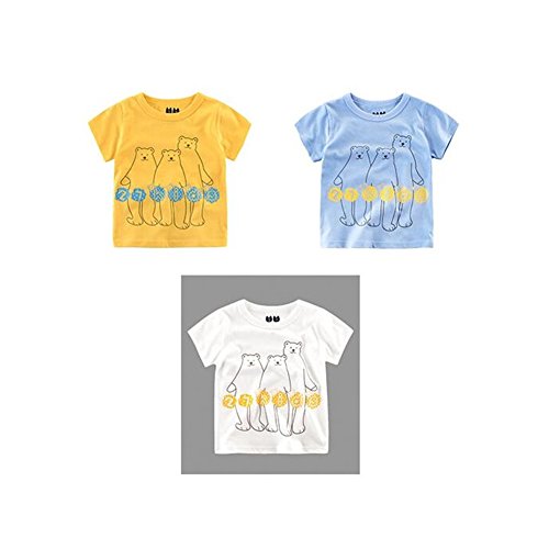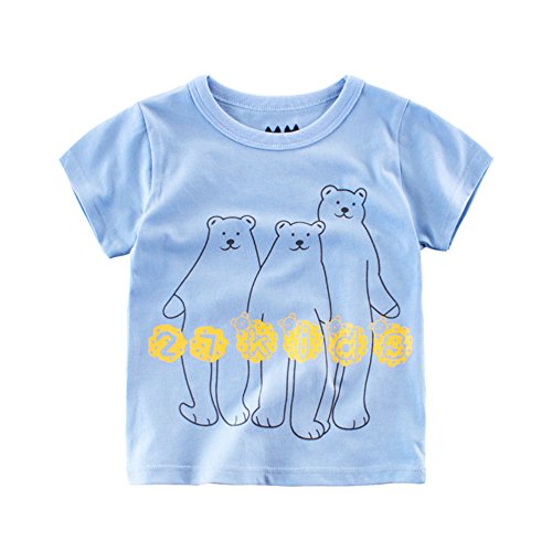PANCY 子供服 春夏 半袖 Tシャツ 男の子 女の子 コットン製 プリントTシャツ かわいい くま柄(ブルー,110cm)