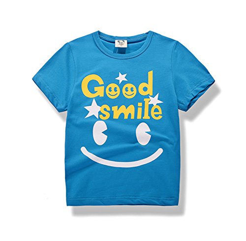 PANCY 子供服 春夏 半袖 Tシャツ 男の子 女の子 キッズ 丸い襟 おしゃれ カジュアル ファッション 個性的 5色(ブルー/130#)