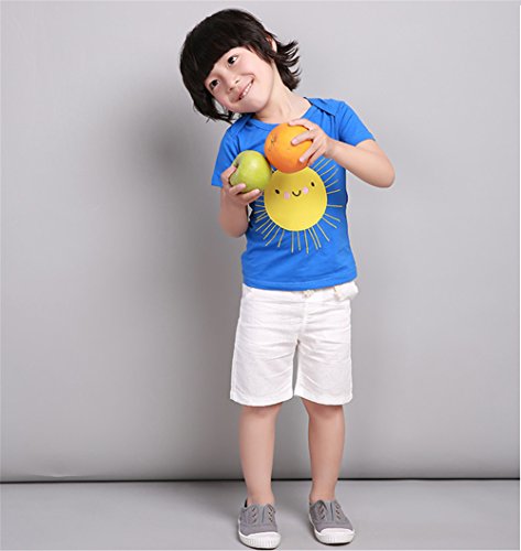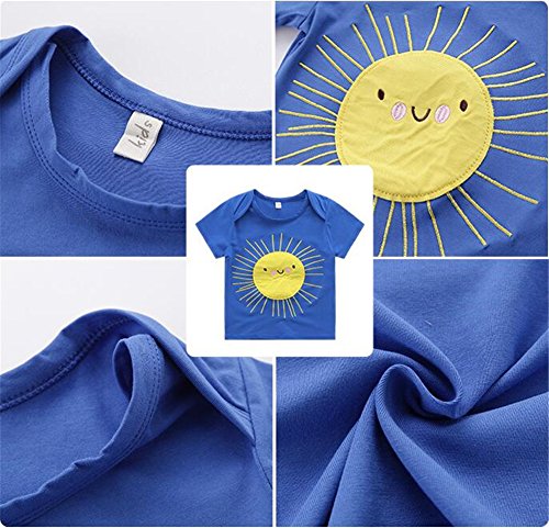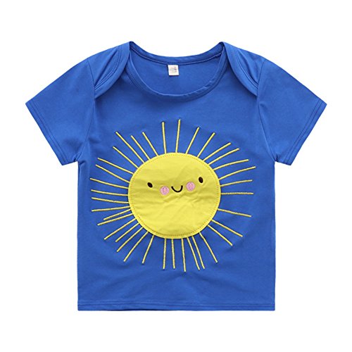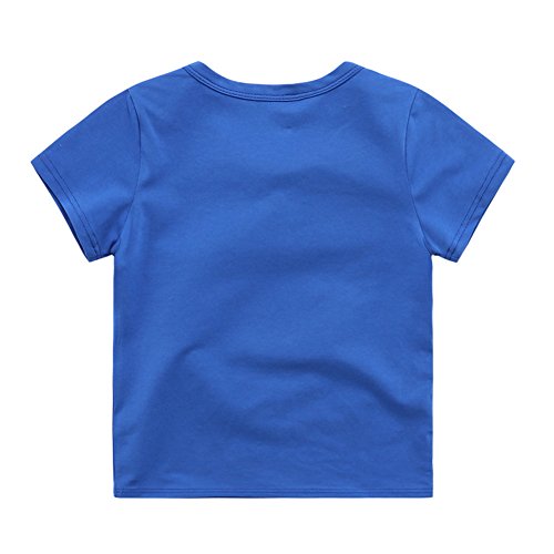 PANCY 子供服 春夏 半袖 Tシャツ 男の子 女の子 コットン製 プリントTシャツ かわいい 刺繍入り ブルー(100cm)