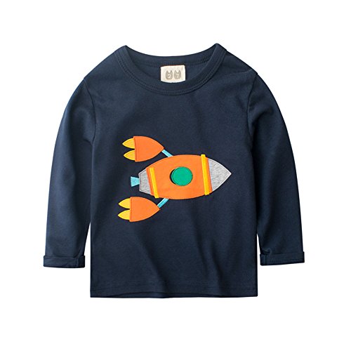 PANCY 子供服 春秋 長袖 Tシャツ キッズ トレーナー 丸い襟 男の子 女の子 可愛い 動物柄 恐竜(110cm,ネイビー ワニ)