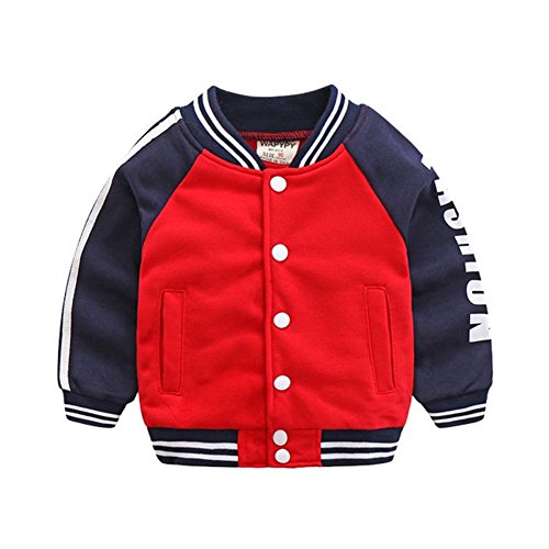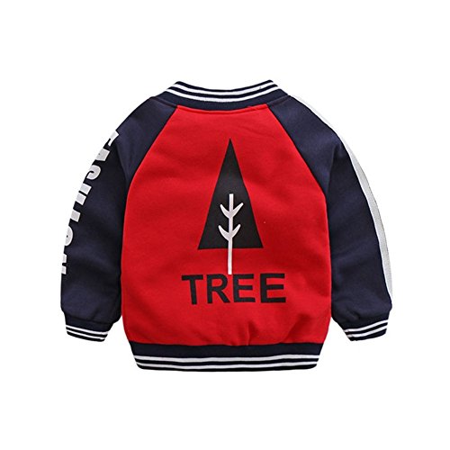 PANCY 子供服 春秋 スタジャン 長袖 ジャケット キッズ ジャンパー 防風 コート 男の子 女の子 シンプル ネイビー(レッド,110cm)
