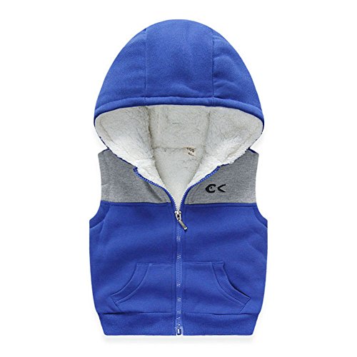 PANCY 子供服 秋冬 綿服 袖なし 防寒コート フード付き ベスト 厚手 裏起毛 シンプル 男の子 女の子(110cm,ブルー)