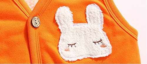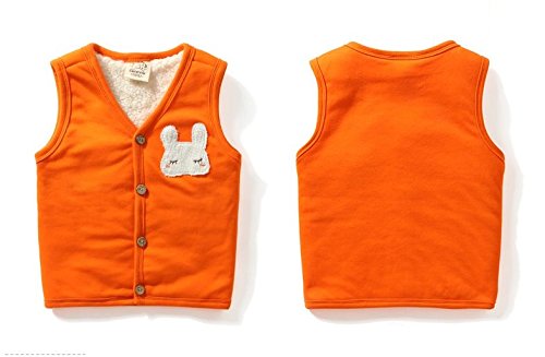 PANCY 子供服 秋冬 綿服 ボア 袖なし ジャケット 防寒 ベスト 女の子 裏起毛 可愛い うさぎ アップリケ(120cm,オレンジ)