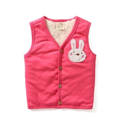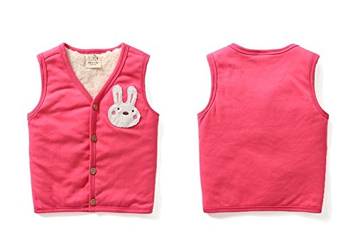 PANCY 子供服 秋冬 綿服 ボア 袖なし ジャケット 防寒 ベスト 女の子 裏起毛 可愛い うさぎ アップリケ(110cm,ローズ)