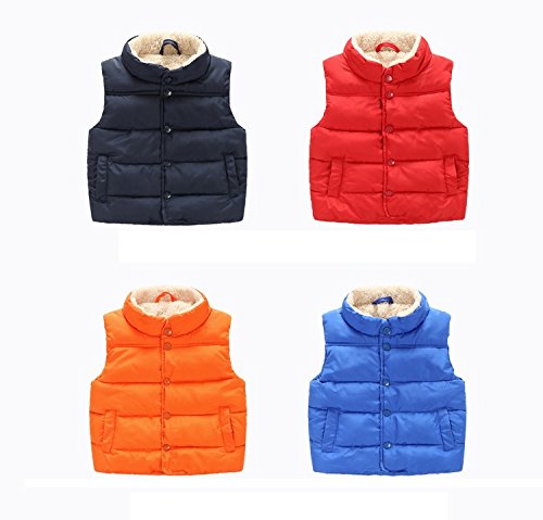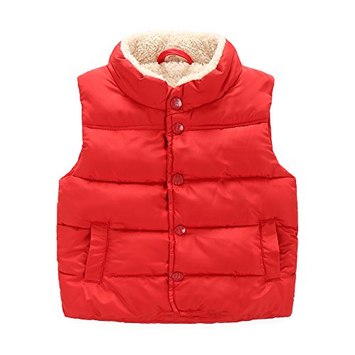 PANCY 子供服 秋冬 袖なし ジャケット 中綿 ベスト 立て襟 裏起毛 厚手 無地 シンプル 男の子 女の子(100cm,レッド)