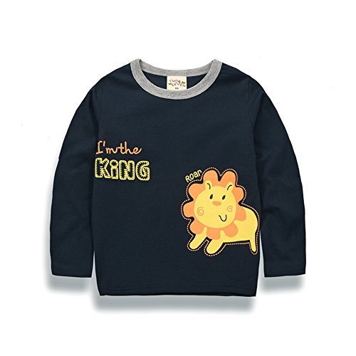 PANCY 子供服 春秋 長袖 Tシャツ トレーナー 丸い襟 男の子 女の子 可愛い 動物柄 ライオン くま 4種(100cm,ネイビー ライオン)