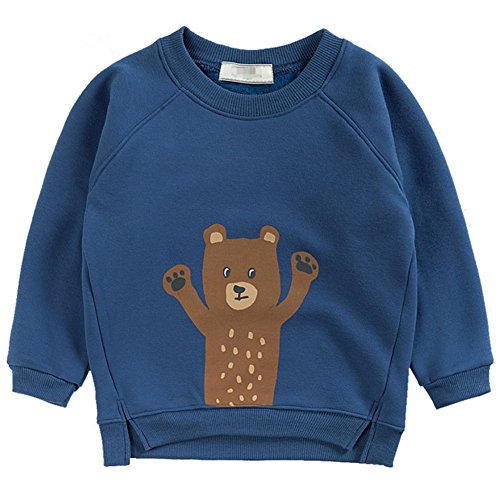 PANCY 子供服 春秋 冬 長袖 Tシャツ トレーナー 丸い襟 男の子 女の子 ベビー 裏起毛 おしゃれ カジュアル ファッション 可愛い 動物柄 熊 プリント 3色