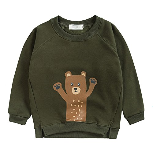 PANCY 子供服 春秋 冬 長袖 Tシャツ トレーナー 丸い襟 男の子 女の子 ベビー 裏起毛 おしゃれ カジュアル ファッション 可愛い 動物柄 熊 プリント 3色