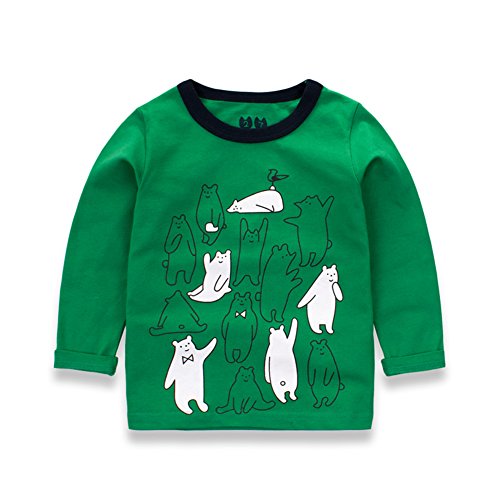 PANCY 子供服 春秋 長袖 Tシャツ キッズ トレーナー 丸い襟 男の子 女の子 可愛い 動物柄 くま きつね うま(120cm,ダークグリーン)