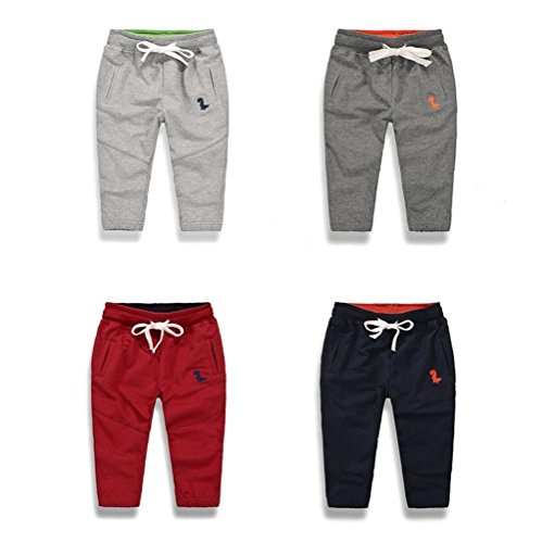 PANCY 子供服 春秋 長ズボン キッズ 縄付き ロングパンツ 男の子 女の子 シンプル 無地 恐竜柄(ネイビー,120cm)