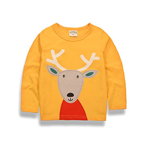 PANCY 子供服 春秋 長袖 Tシャツ トレーナー 丸い襟 男の子 女の子 可愛い 動物柄 恐竜 トナカイ キリン きつね(100cm,イエロー)