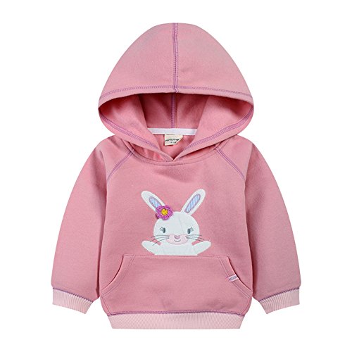 PANCY 子供服 秋冬 スウェットパーカー フード付き トレーナー フーディ 長袖 厚手 可愛い うさぎ柄 刺繍 女の子(100cm,ピンク)
