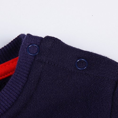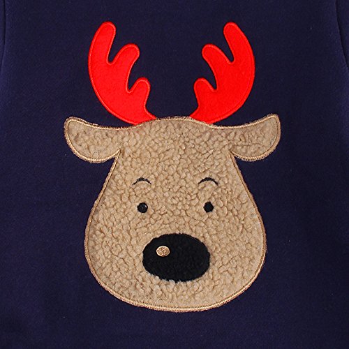 PANCY 子供服 秋冬 長袖 トレーナー 丸首 肩ボタン 裏起毛 男の子 女の子 可愛い 動物柄 5種:ペンギン トナカイ きつね さる(80cm,ネイビー)