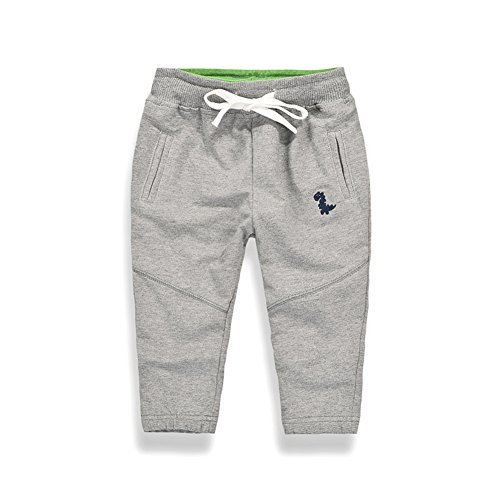 PANCY 子供服 春秋 長ズボン キッズ 縄付き ロングパンツ 男の子 女の子 シンプル 無地 恐竜柄(ライトグレー,110cm)