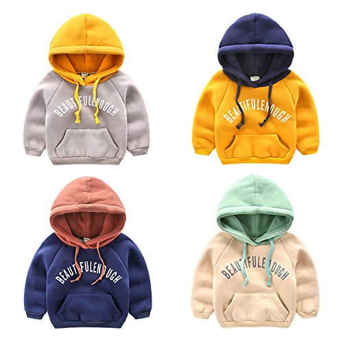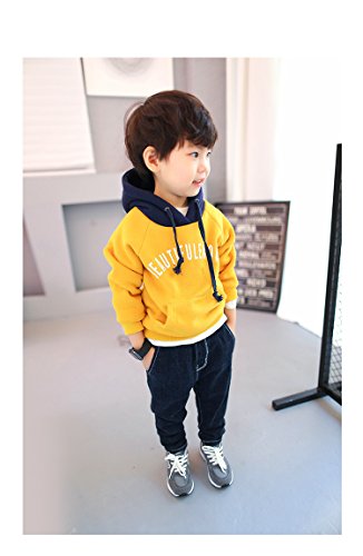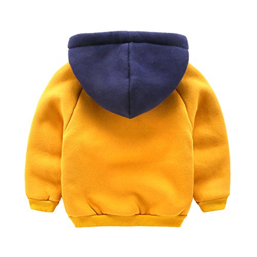 PANCY 子供服 秋冬 スウェットパーカー フード付き コート フーディ 長袖 裏起毛 シンプル 男の子 女の子(110cm,イエロー)