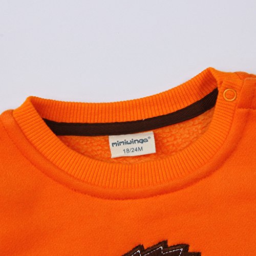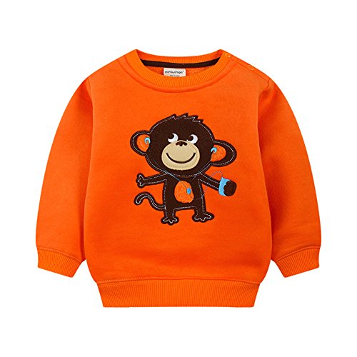 PANCY 子供服 秋冬 長袖 トレーナー 丸首 肩ボタン 裏起毛 男の子 女の子 可愛い 動物柄 5種:ペンギン トナカイ きつね さる(90cm,オレンジ)