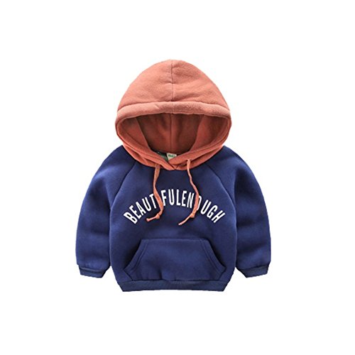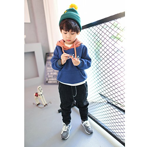 PANCY 子供服 秋冬 スウェットパーカー フード付き コート フーディ 長袖 裏起毛 シンプル 男の子 女の子(90cm,ネイビー)